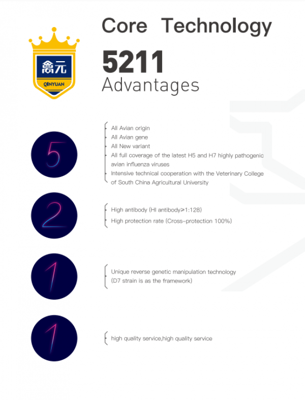 [Function and Application] It is used to prevent avian influenza caused by H5 subtype Clade 2.3.2.2.1d,Clade 2.3.4.4d and H7 subtype avian influenza virus.