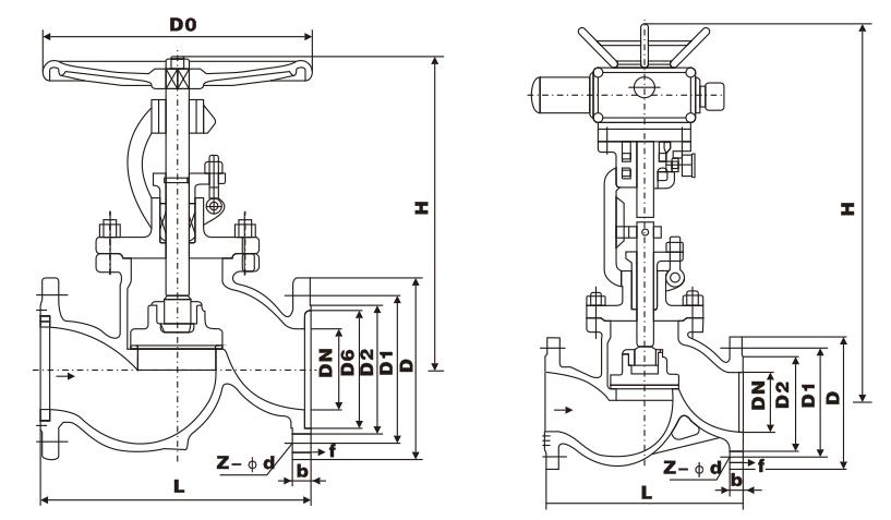 J941H電動截止閥主要外形尺寸