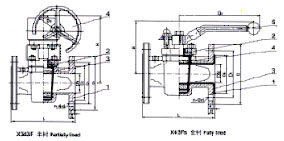 1、閥體、2、閥蓋3、塞子4、蝸輪裝置1、閥體、2、閥蓋3、閥體襯里4、塞子5、手柄