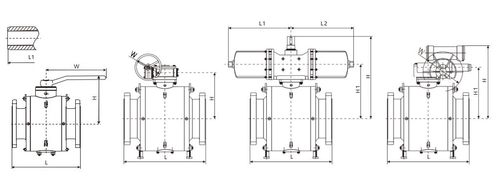 四、Q341F/H/W/Y美標固定式球閥主要外形尺寸