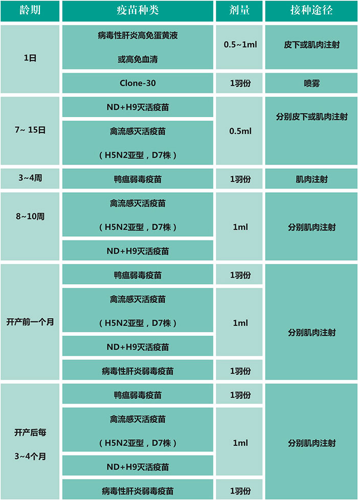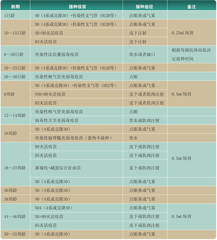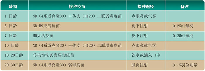 肉雞(100日齡上市為例)參考免疫程序
