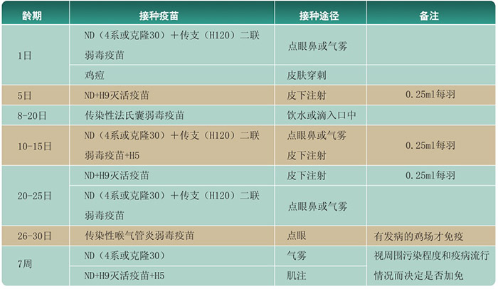 肉雞(49日齡上市為例)參考免疫程序