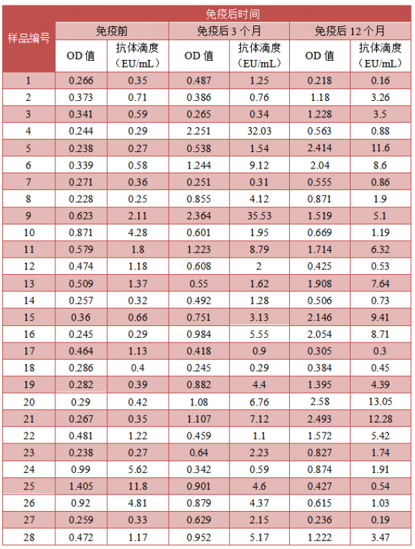 參照OIE陸生動物診斷試驗與疫苗手冊[3],抗體滴度≥0.6EU/mL判為保護和抗體陽轉。2 結果