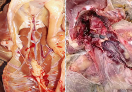 觀察雞群狀況,根據發病日齡、臨床癥狀、流行病學和死亡規律;解剖察看病理變化,若有上述特征性病變則可初步診斷;進一步診斷還需要采集病料(主要肝、腎、肺臟等病變組織),實驗室做核酸檢測。
