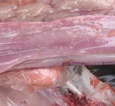 現(xiàn)場剖檢4只鵝,4/4只鵝出現(xiàn)腸粘膜脫漏、腸道充滿血樣液體、空腸回腸出現(xiàn)蠟樣栓塞;4/4只鵝出現(xiàn)胰腺有壞死點;4/4只鵝腎腫脹;呼吸道癥狀不明顯,如下圖: